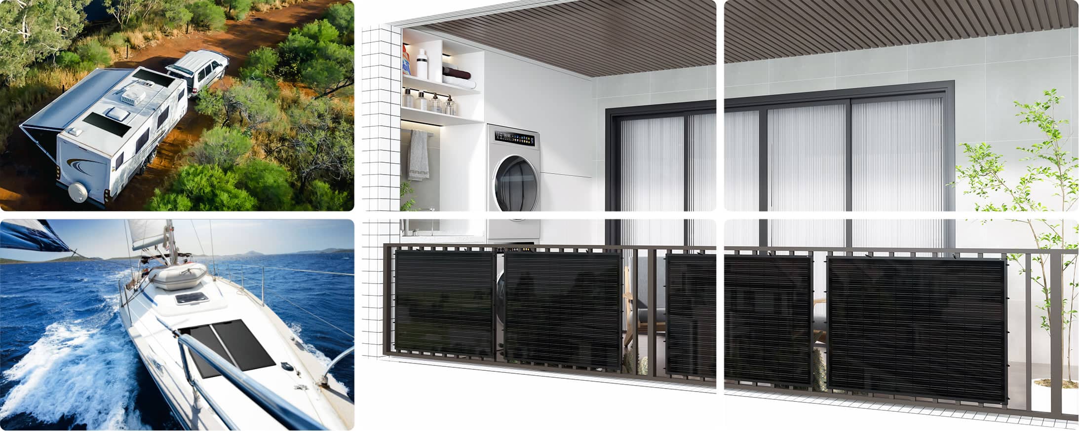 刀锋超薄光伏组件主要用于阳台、房车、游艇、露营车、高尔夫球车等场合。