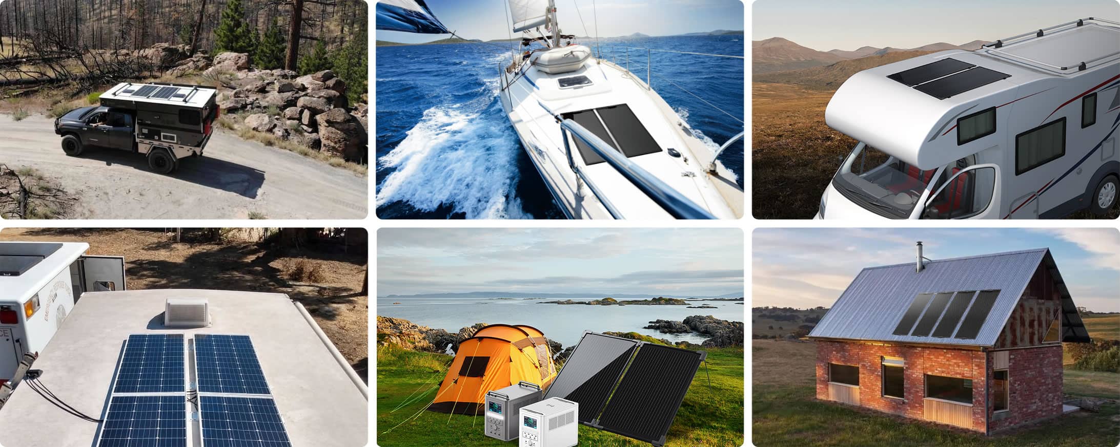 套装可以选择不同类型的高功率太阳能板,根据使用场景可选择常规组件、折叠组件、柔性组件或超薄组件,搭配控制器使用。
